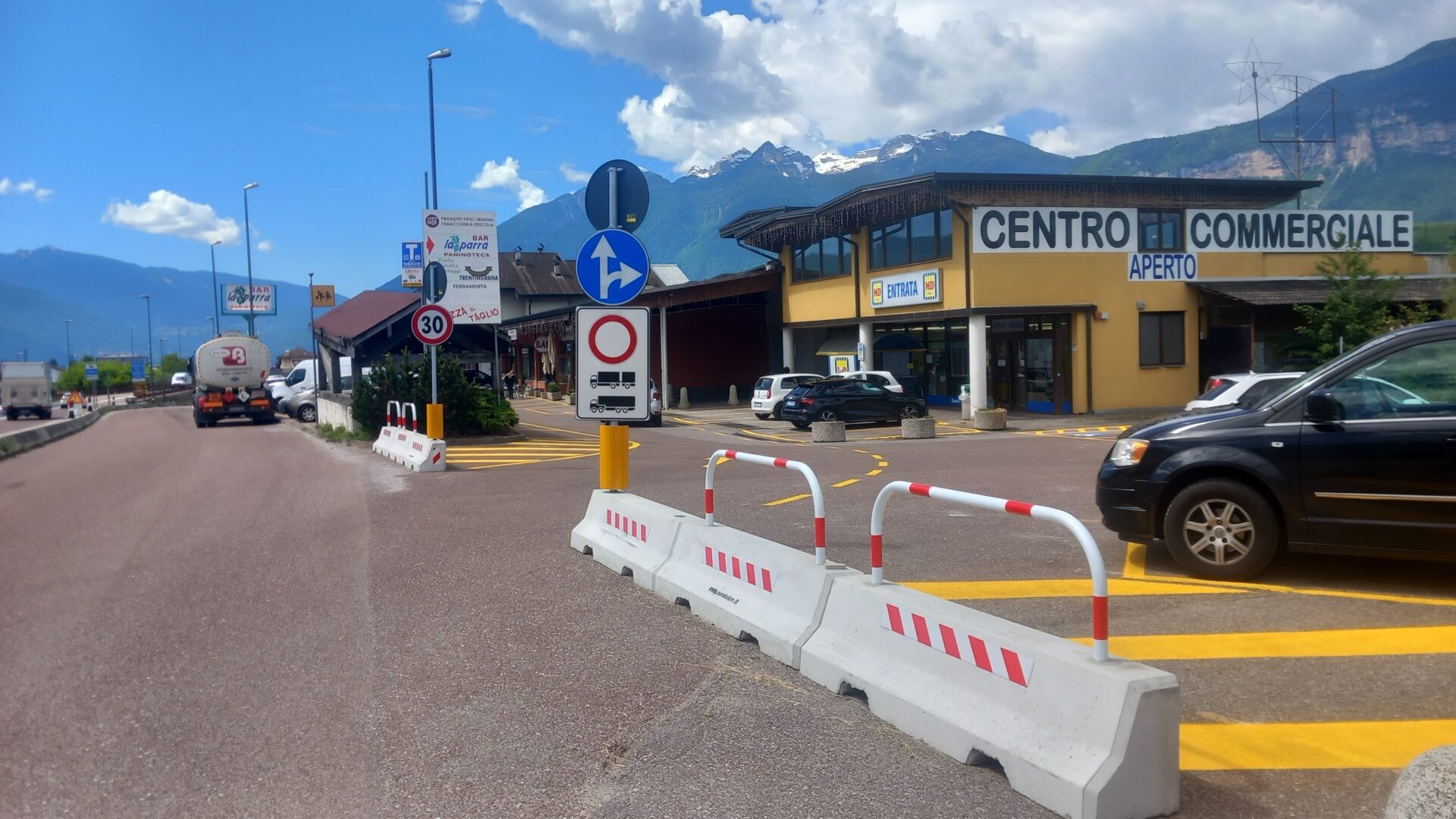 mini new jersey monopiede utilizzati come dissuasori di sosta per il parcheggio di Tir sulla statale dell'Abetone